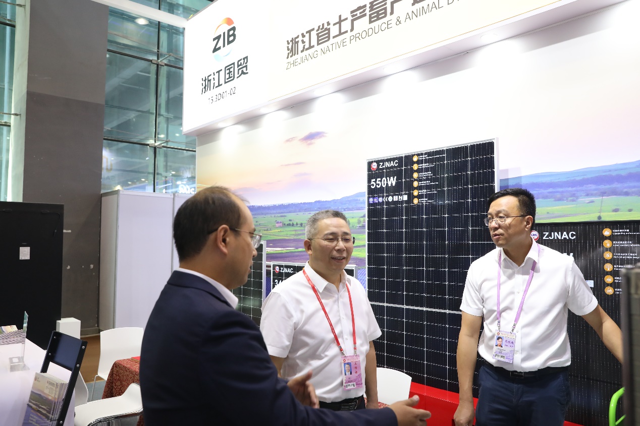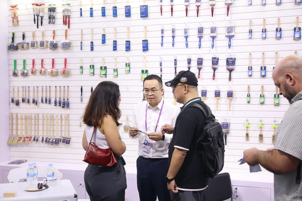 在第一期廣交會(huì)上,浙江土畜包括下屬輕工、盛力公司共有工具、五金、新能源等在內(nèi)的29個(gè)展位。公司老牌出口拳頭產(chǎn)品的漆刷展位積極順應(yīng)綠色環(huán)保發(fā)展趨勢(shì),帶來(lái)了用回收材料制成的油漆滾筒刷,并攜此產(chǎn)品參加了本屆廣交會(huì)新品發(fā)布活動(dòng)。新能源展位作為新質(zhì)生產(chǎn)力產(chǎn)品開(kāi)發(fā)前線(xiàn),其光伏組件產(chǎn)品吸引了大量外商駐足和洽談。