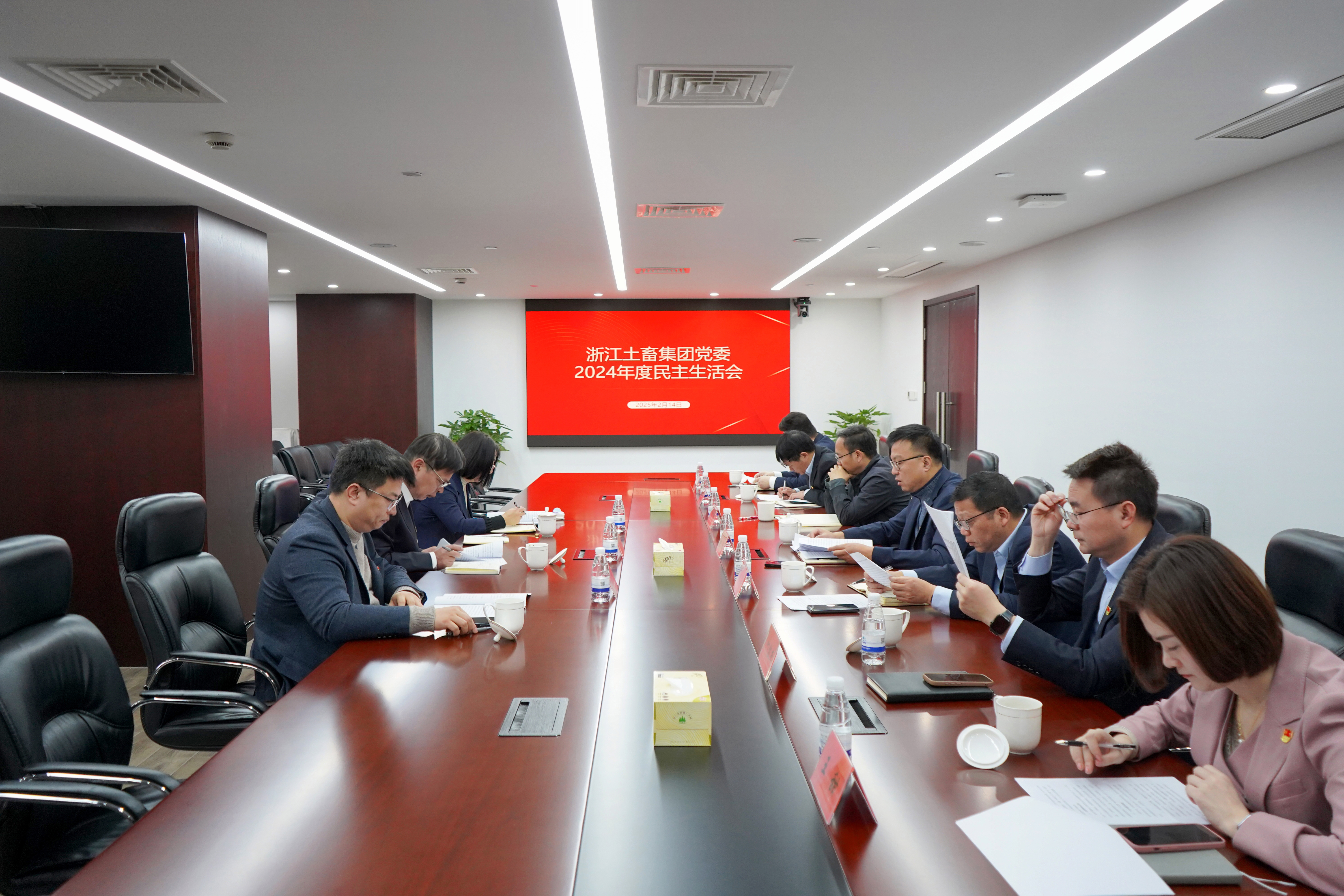 2月14日上午,浙江土畜黨委召開2024年度領(lǐng)導(dǎo)班子和黨員領(lǐng)導(dǎo)干部民主生活會。省國貿(mào)集團(tuán)黨委委員、副總經(jīng)張勇,商貿(mào)部副總經(jīng)理(主持工作)宋耀華,黨委組織部(人力資源部)副部長戴純平到會指導(dǎo)。公司黨委書記、董事長張斌主持會議,黨委領(lǐng)導(dǎo)班子成員參加會議。