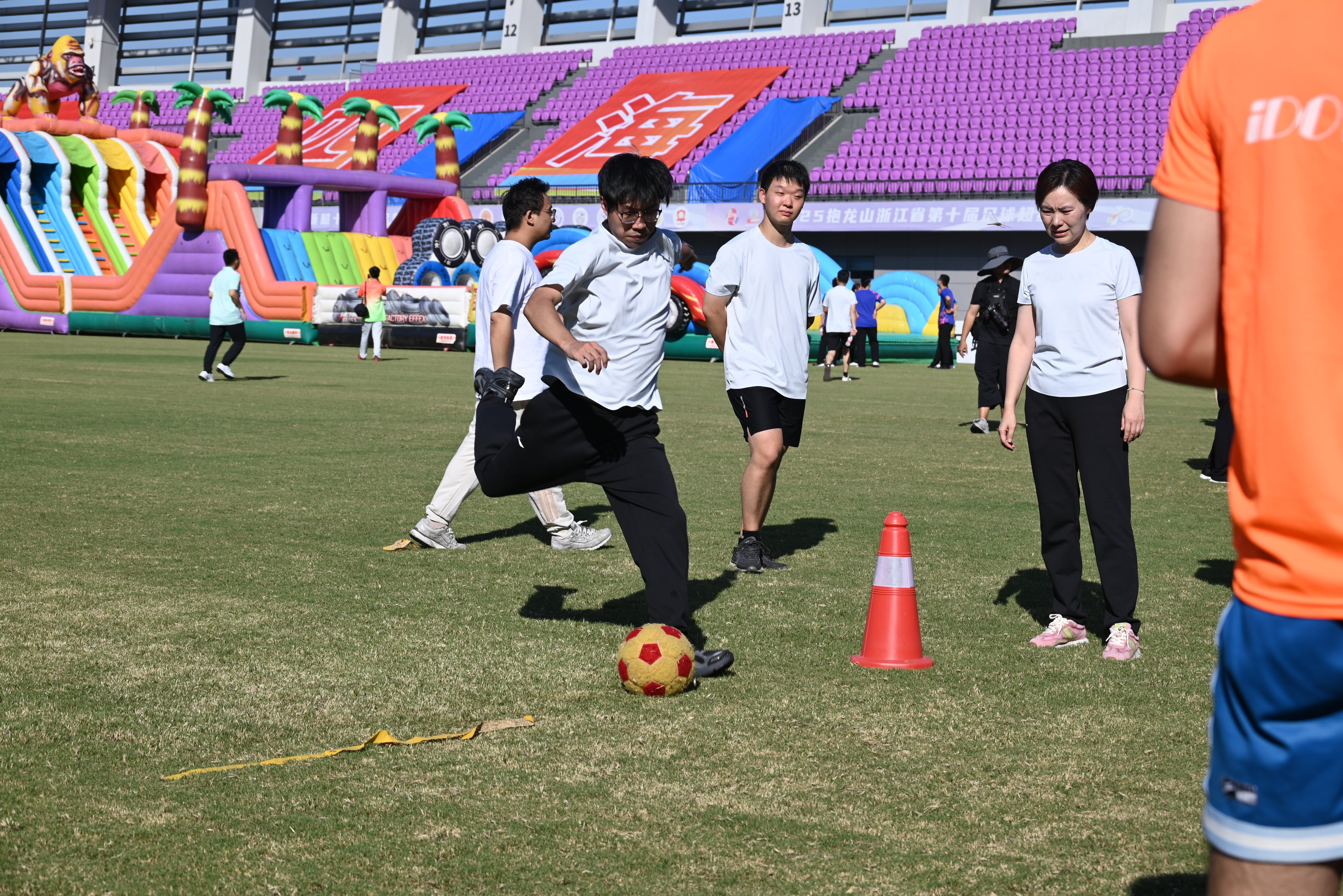 趣味項(xiàng)目環(huán)節(jié)更是精彩紛呈:“錨定青春”中,隊(duì)員們凝神聚氣,發(fā)球射門劃出優(yōu)美弧線,精準(zhǔn)投向得分點(diǎn);“枕頭大作戰(zhàn)”現(xiàn)場(chǎng)歡呼不斷,彩色枕頭在空中飛舞,隊(duì)員們默契傳遞、靈活應(yīng)對(duì),展現(xiàn)了戰(zhàn)術(shù)與協(xié)作的完美結(jié)合;而在“快樂沖沖沖”障礙接力中,四位隊(duì)員疾步如風(fēng),穿越重重關(guān)卡,擊掌接力間盡顯速度與激情。