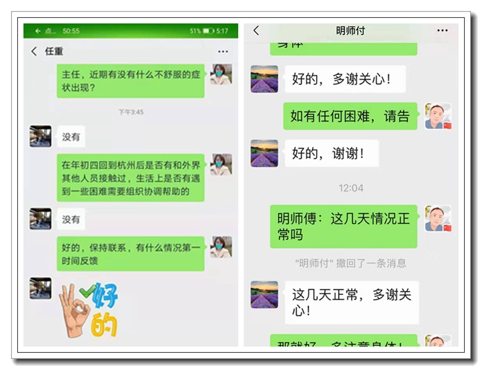 人力資源部孫陽瑯每天加班加點匯總統(tǒng)計各成員公司上千名員工的疫情日報信息,并根據(jù)不斷發(fā)展的疫情變化,反復(fù)調(diào)整修改“一人一表”調(diào)查問卷,對個別情況復(fù)雜的員工逐一電話聯(lián)系、叮囑,做到底數(shù)摸清、情況了然,為公司采取各項管控措施提供了有力的決策依據(jù)。家里的孩子心中牽掛,就發(fā)來視頻提醒爸爸疫情期間要注意休息,才能提高自身抵抗力降低感染風(fēng)險。