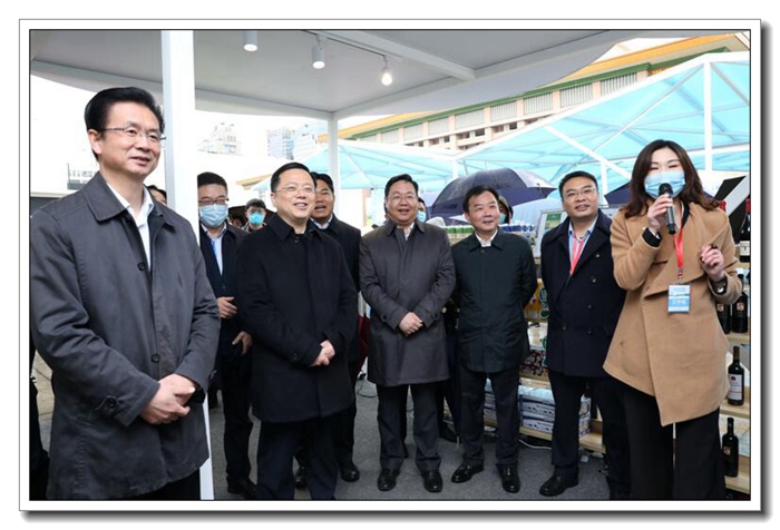 開幕日上午,省政府副秘書長高屹,省商務(wù)廳廳長盛秋平,下城區(qū)委書記劉穎等領(lǐng)導(dǎo)在省國貿(mào)集團(tuán)黨委委員、副總經(jīng)理黃道領(lǐng),浙江土畜總經(jīng)理?xiàng)钴S勝的陪同下,蒞臨公司展位,現(xiàn)場觀看公司斯托卡羅紅酒在阿里平臺上的“云拍賣”活動(dòng)。黃總代表國貿(mào)集團(tuán)向到場的嘉賓們詳細(xì)介紹了浙江土畜進(jìn)口的牛肉、紅酒和牛奶等產(chǎn)品。近年來,浙江土畜依托互聯(lián)網(wǎng)科技和武林商圈黨建聯(lián)盟豐富的企業(yè)資源,積極培育進(jìn)口產(chǎn)品的新零售模式,努力促進(jìn)傳統(tǒng)商貿(mào)業(yè)務(wù)云轉(zhuǎn)型。