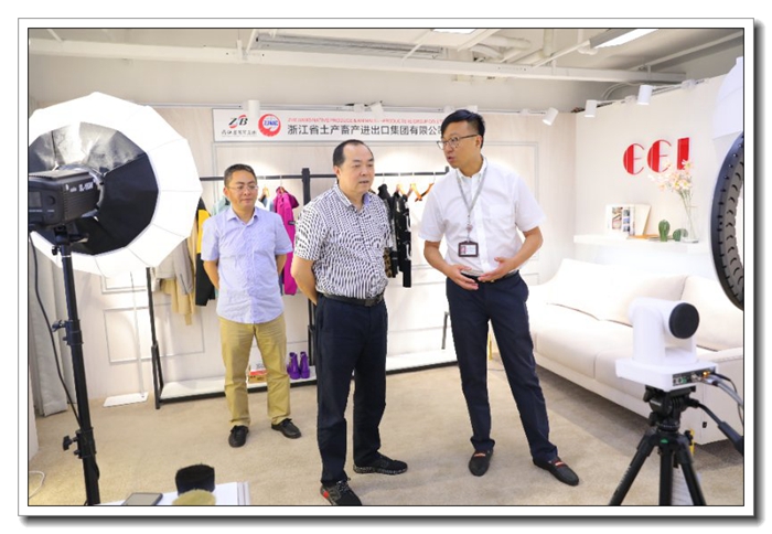 6月17日,盛躍星紀(jì)委書記、帥長斌主席現(xiàn)場觀看了公司形象展示直播,聽取了董事長張斌關(guān)于直播間布局、直播場次、產(chǎn)品云展銷流程等方面的介紹。駱敏華副總經(jīng)理在產(chǎn)品宣傳直播間觀看了家用用品、工具產(chǎn)品兩場直播,向業(yè)務(wù)主播詢問了漆刷等直播產(chǎn)品的有關(guān)情況。6月18日,鄭偉副書記現(xiàn)場觀看了公司EEI羊絨品牌服裝直播,對省土畜傳統(tǒng)外貿(mào)從線下走到線上的直播營銷模式進(jìn)行了詳細(xì)了解。