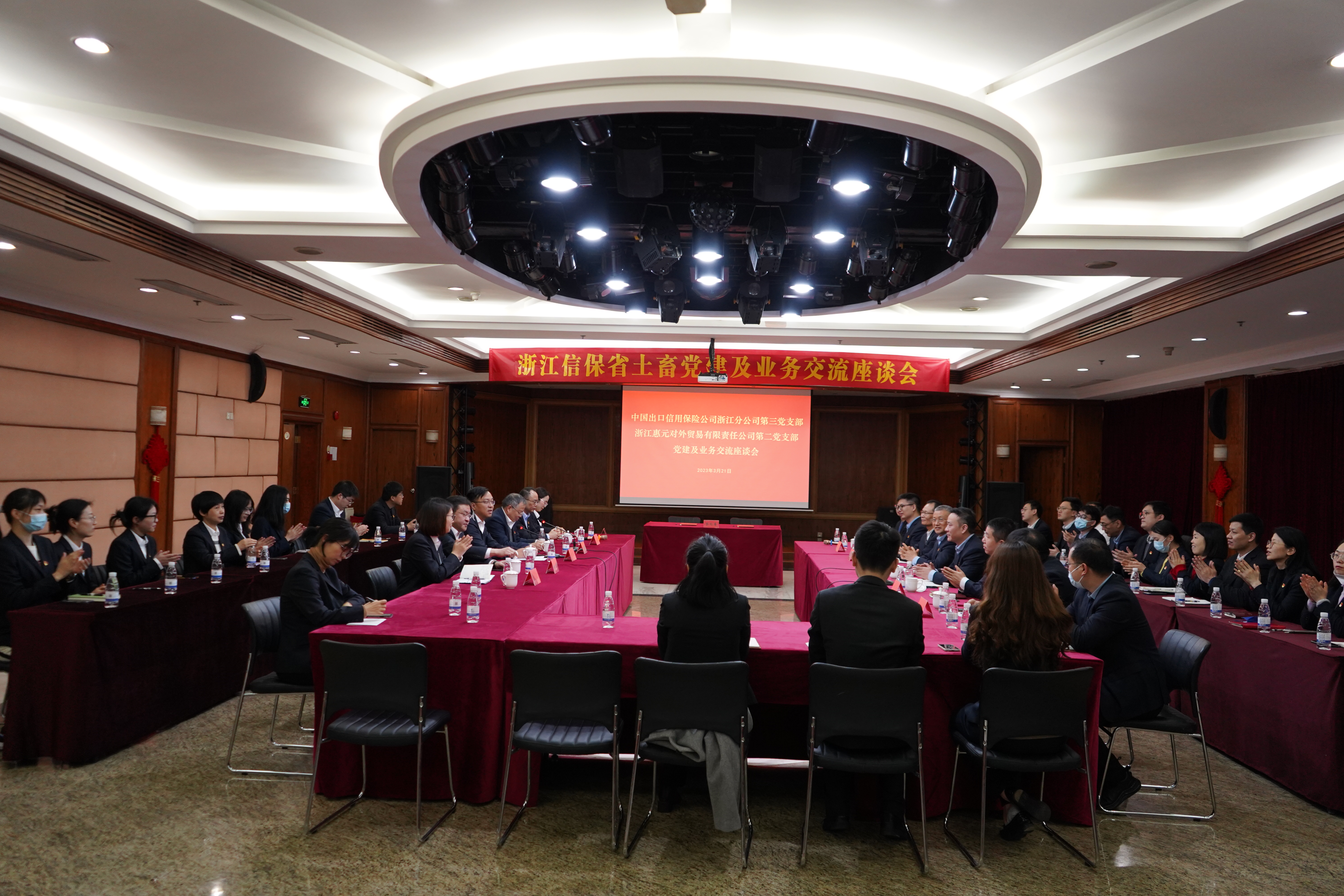 交流座談會(huì)上,張斌書記詳細(xì)介紹了浙江土畜經(jīng)營(yíng)概況和黨建工作。他表示,浙江信保是土畜集團(tuán)多年的合作伙伴,為我司內(nèi)外貿(mào)業(yè)務(wù)發(fā)展保駕護(hù)航。此次支部共建有利于深化合作,兩個(gè)支部要充分發(fā)揮各自優(yōu)勢(shì),形成互幫互助、聯(lián)合推動(dòng)的整體合力。