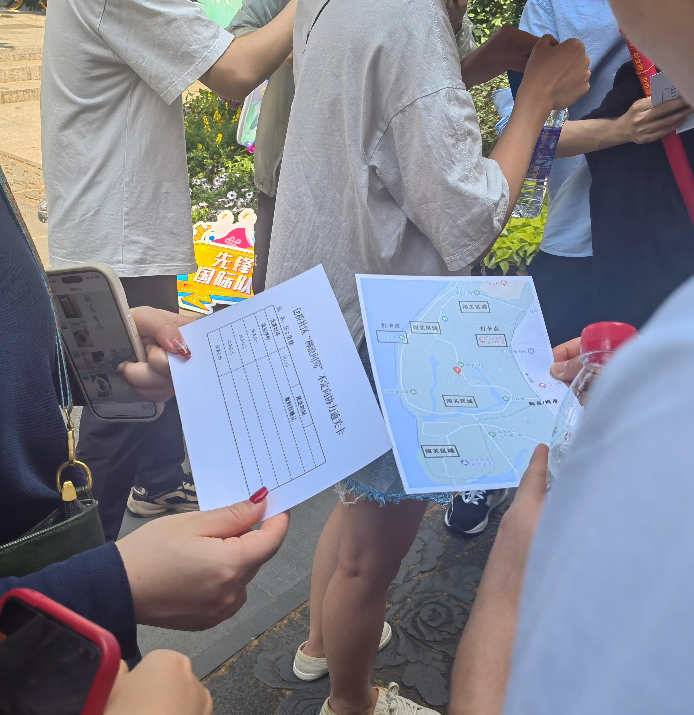 本次活動共設(shè)置2個打卡點,4個闖關(guān)點,參與者需到打卡點拍照打卡并到達規(guī)定區(qū)域通過“紙不落地”、“轉(zhuǎn)圈擊掌”、“秒解繩結(jié)”、“瘋狂搖擺”的趣味項目完成闖關(guān)。