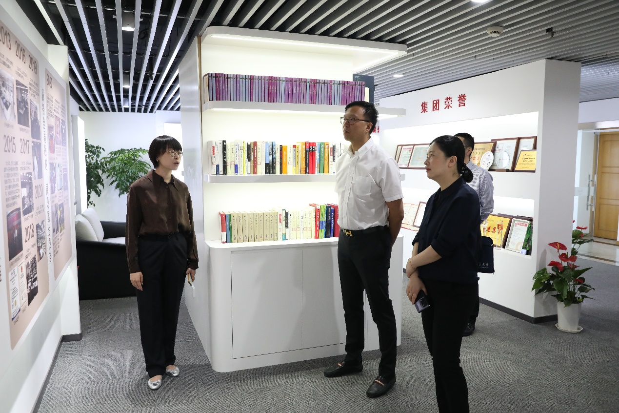 金朝萍一行先后參觀了企業(yè)文化俱樂(lè)部和數(shù)字服裝研發(fā)中心,詳細(xì)了解浙江土畜發(fā)展歷程與數(shù)字服裝板塊建設(shè)成果。