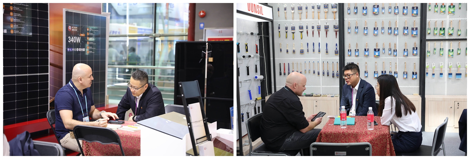 10月15日至20日第一期廣交會,在公司五金工具、汽配、新能源等9個攤位上,漆刷團隊帶來了全新設計的人體工程學手柄油漆刷,汽配團隊展出輕巧、耐用的新一代車頂架和自行車架產(chǎn)品,新能源團隊陳列的光伏組件效率高達23.5%,吸引了眾多海外客商來公司展位洽談、了解產(chǎn)品。
