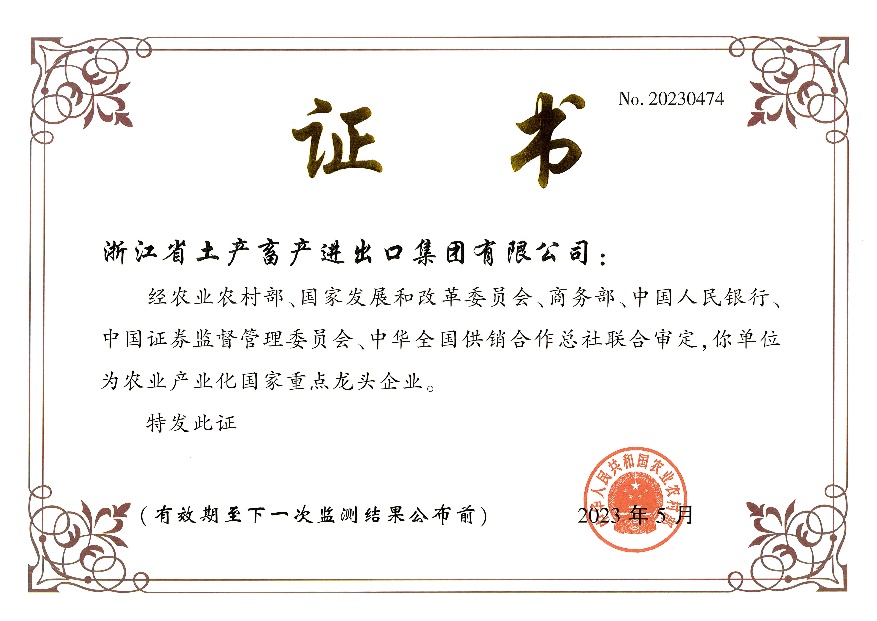 近期,經(jīng)農(nóng)業(yè)農(nóng)村部等八部委聯(lián)合審定,浙江土畜順利通過了第十次農(nóng)業(yè)產(chǎn)業(yè)化國家重點(diǎn)龍頭企業(yè)監(jiān)測(cè)。自2011年成為第五批國家重點(diǎn)龍頭企業(yè)以來,公司…