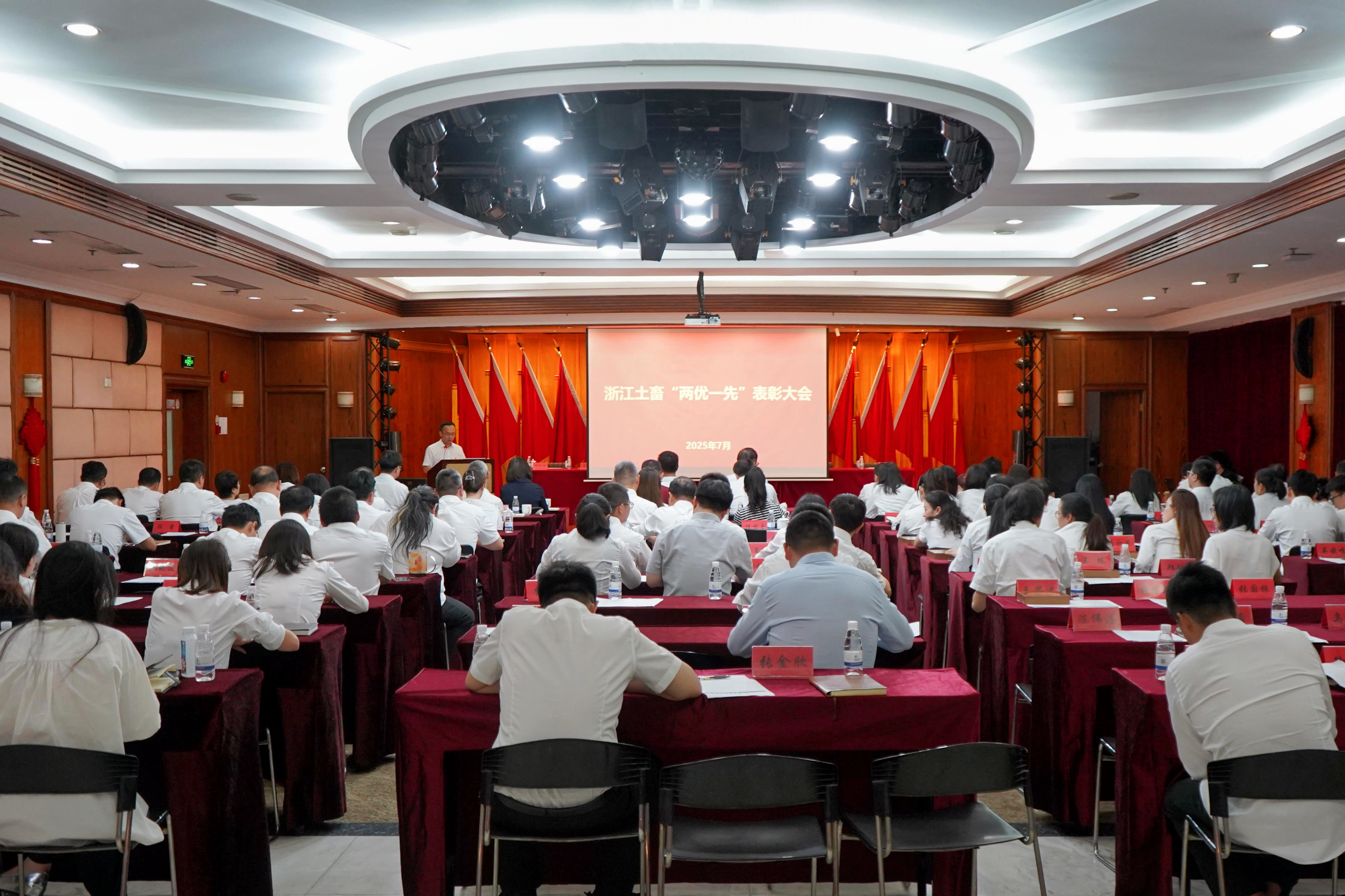 7月25日上午,浙江土畜召開“兩優(yōu)一先”表彰大會暨2025年第七次黨委理論學(xué)習(xí)中心組(擴(kuò)大)學(xué)習(xí)會,公司黨委理論中心組成員、專職外部董事、中層及以上干部、各黨支部支委班子、團(tuán)委委員、受表彰的集體代表和個人參加會議。公司黨委書記、董事長張斌以《“圖”新“蓄”遠(yuǎn) 奮楫爭先 在拼搏實(shí)干中彰顯信仰力量》為題講授專題黨課,黨委副書記、董事、工會主席金彤主持會議。