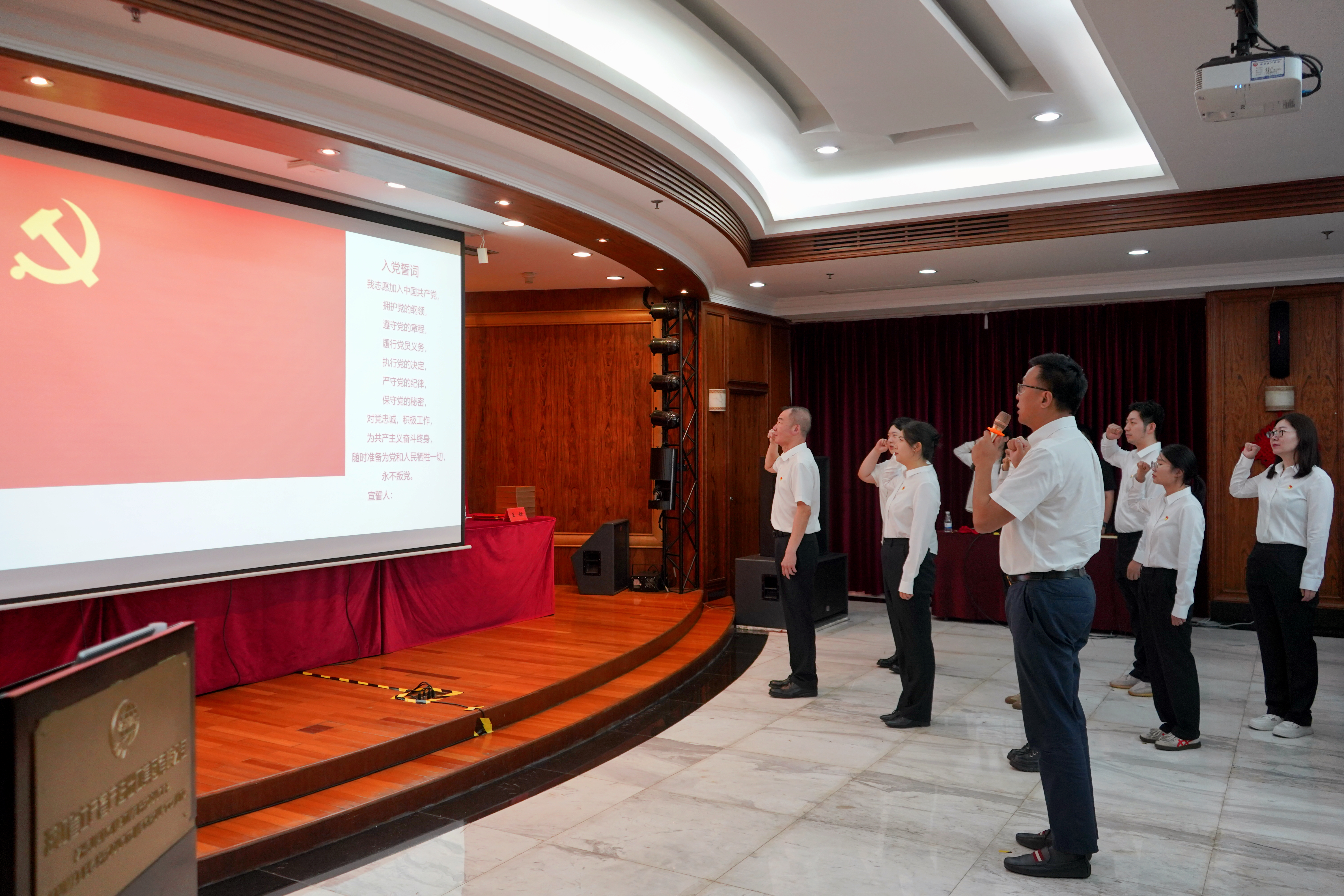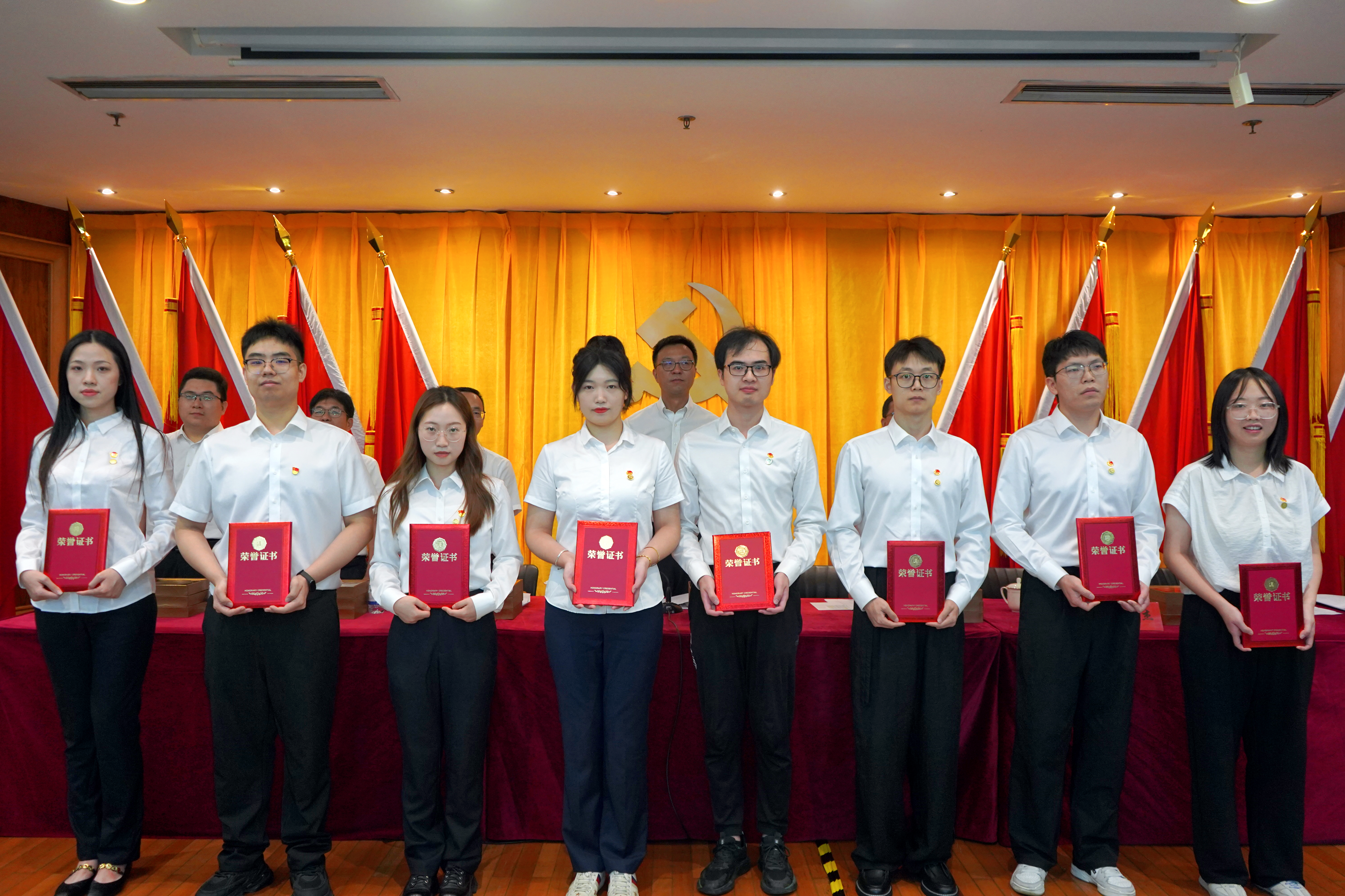 會上,公司黨委書記、董事長張斌領(lǐng)誓,預(yù)備黨員莊嚴(yán)宣誓、全體黨員重溫入黨誓詞。公司黨委副書記、董事、總經(jīng)理林軍宣讀“兩優(yōu)一先”表彰決定,黨委班子成員為2024年度“兩優(yōu)一先”表彰對象、優(yōu)秀共青團(tuán)員和團(tuán)干部及司齡10年以上的員工代表頒發(fā)榮譽(yù)證書。