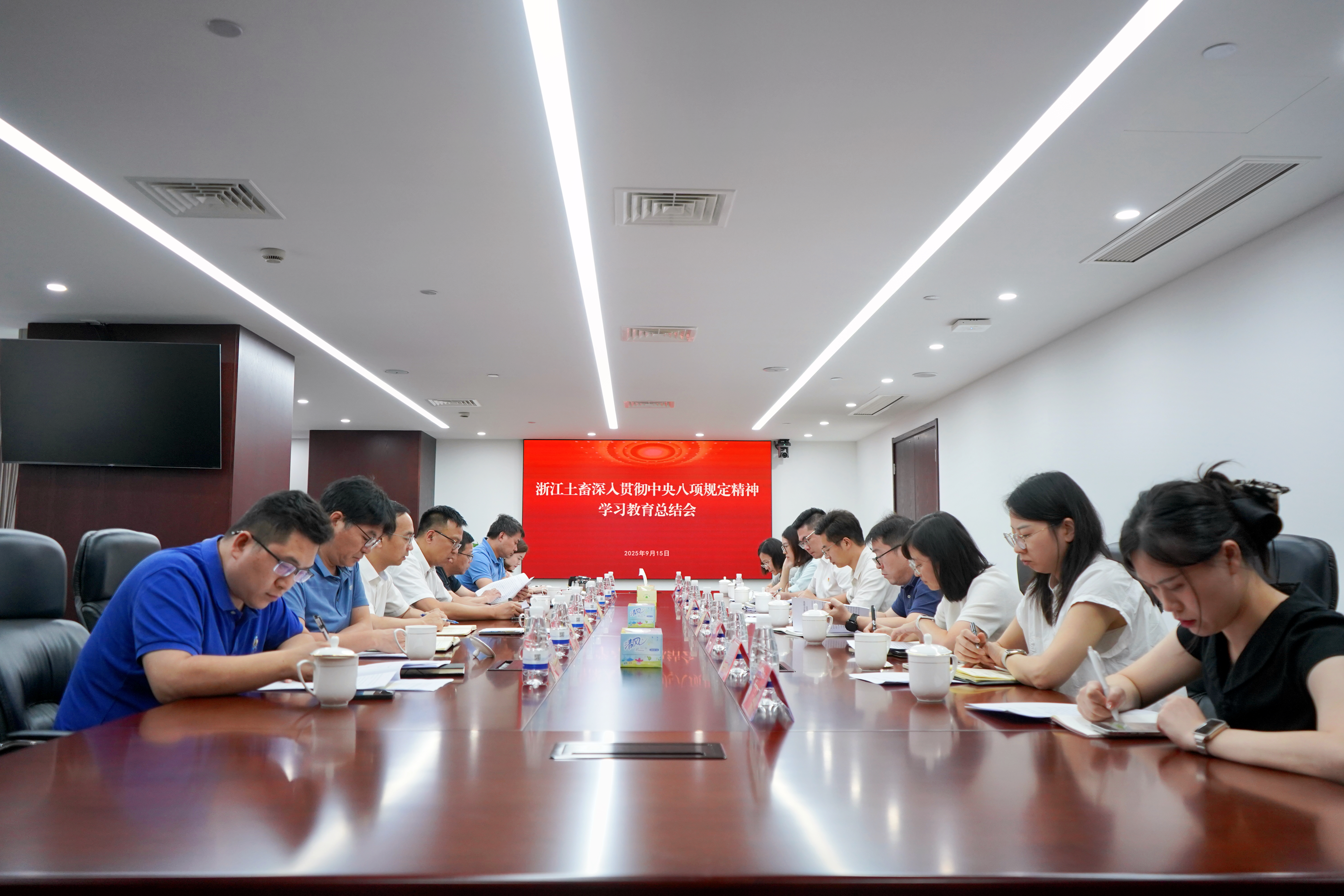 9月15日下午,浙江土畜黨委召開深入貫徹中央八項(xiàng)規(guī)定精神學(xué)習(xí)教育總結(jié)會(huì),傳達(dá)學(xué)習(xí)習(xí)近平總書記關(guān)于深入貫徹中央八項(xiàng)規(guī)定精神學(xué)習(xí)教育的重要指示精神,貫徹落實(shí)省國(guó)貿(mào)集團(tuán)學(xué)習(xí)教育總結(jié)會(huì)精神,總結(jié)公司學(xué)習(xí)教育工作,研究部署鞏固拓展學(xué)習(xí)教育成果、推進(jìn)作風(fēng)建設(shè)常態(tài)化長(zhǎng)效化工作。公司黨委書記、董事長(zhǎng)張斌主持會(huì)議并講話,各支部書記、相關(guān)職能管理部室負(fù)責(zé)人參加會(huì)議。