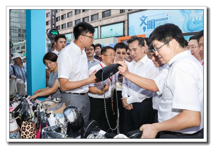 7 月 25 日,商務(wù)部、浙江省人民政府共同主辦的 “外貿(mào)優(yōu)品匯,扮靚步行街”出口產(chǎn)品轉(zhuǎn)內(nèi)銷(杭州站)活動周在杭州湖濱步行街啟動。作為省國貿(mào)集團(tuán)下屬商貿(mào)旗艦企業(yè),浙江土畜集團(tuán)堅決貫徹國家構(gòu)建國內(nèi)國際雙循環(huán)的決策部署,加快開拓出口轉(zhuǎn)內(nèi)貿(mào)渠道,積極組織 5 個出口業(yè)務(wù)部,設(shè)立 8 個展位銷售箱包、服裝、遮陽傘、口罩、保溫杯、香薰等優(yōu)質(zhì)出口產(chǎn)品。商務(wù)部部長助理任鴻斌、浙江省人民政府副省長朱從玖親自蒞臨活動現(xiàn)場指導(dǎo)工作。