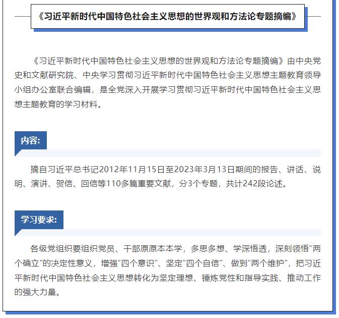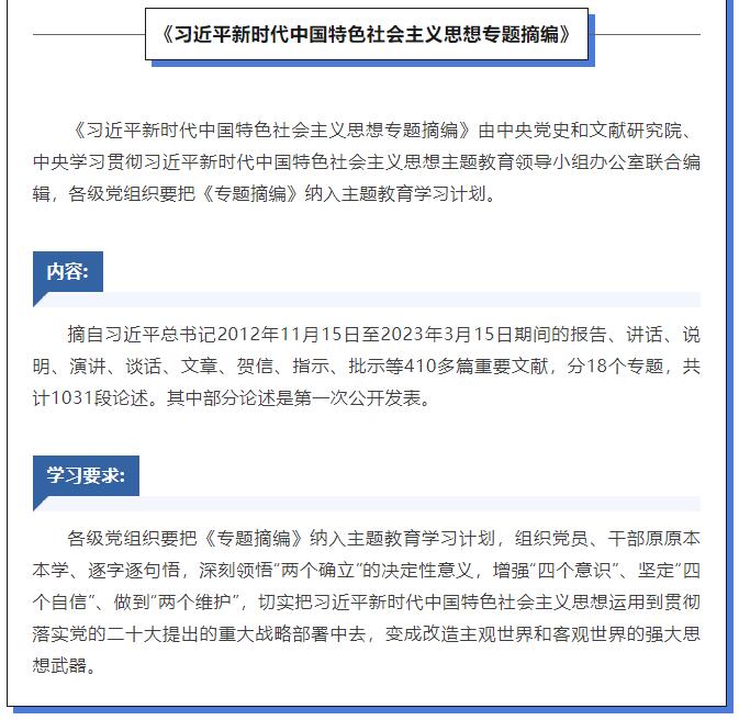 那么,如何加強(qiáng)黨的創(chuàng)新理論武裝?廣大黨員干部要認(rèn)真讀原著、學(xué)原文、悟原理,深刻領(lǐng)悟習(xí)近平新時(shí)代中國特色社會(huì)主義思想的核心要義、精神實(shí)質(zhì)、豐富內(nèi)涵和實(shí)踐要求。深入開展主題教育,這幾種書是重要學(xué)習(xí)材料。