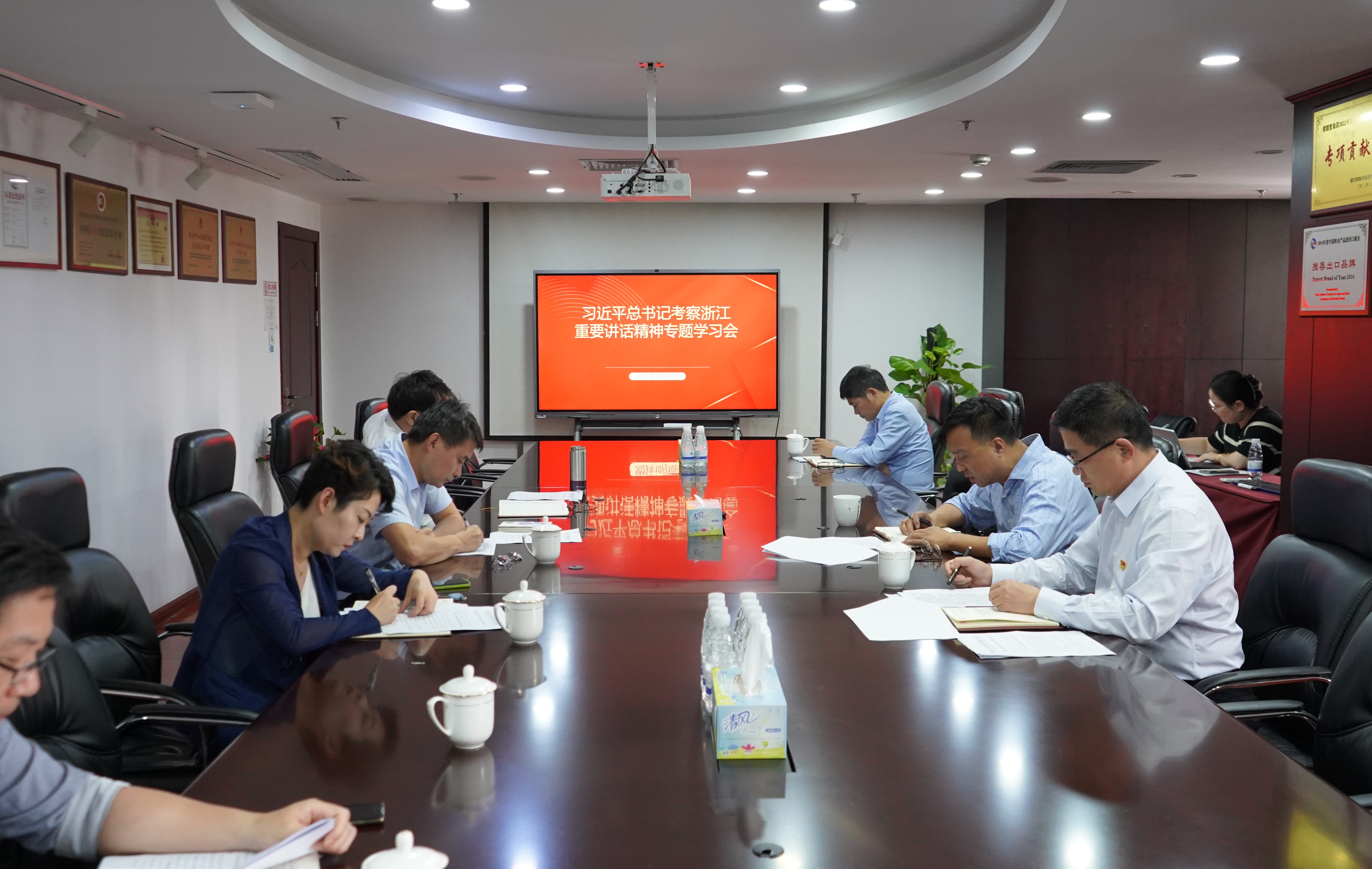 10月10日下午,浙江土畜集團召開黨委專題學習會,傳達學習貫徹習近平總書記考察浙江重要講話精神,以及省委常委會和全省領導干部大會精神,研究部署貫徹落實意見。公司黨委書記、董事長張斌主持會議并講話。